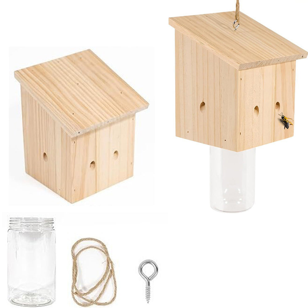 Wooden Bee Trap for Outside Hanging Wood Carpenter Bee Catcher with Removable Bottle Style 2