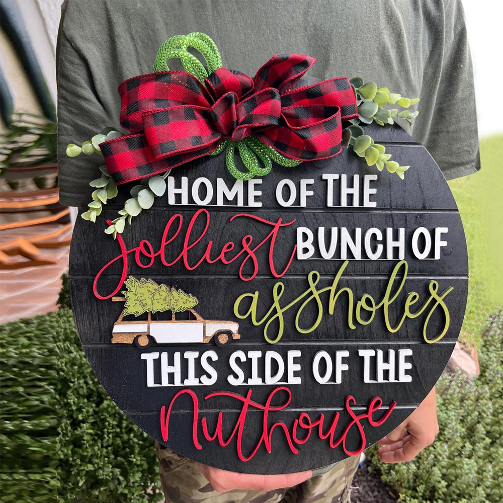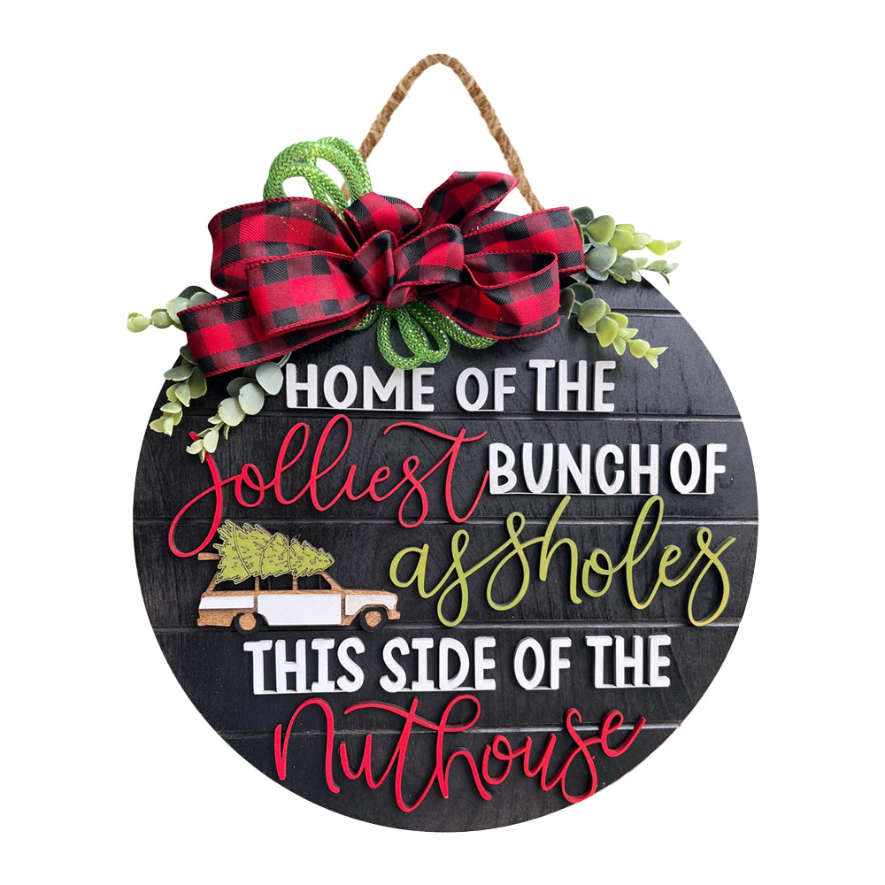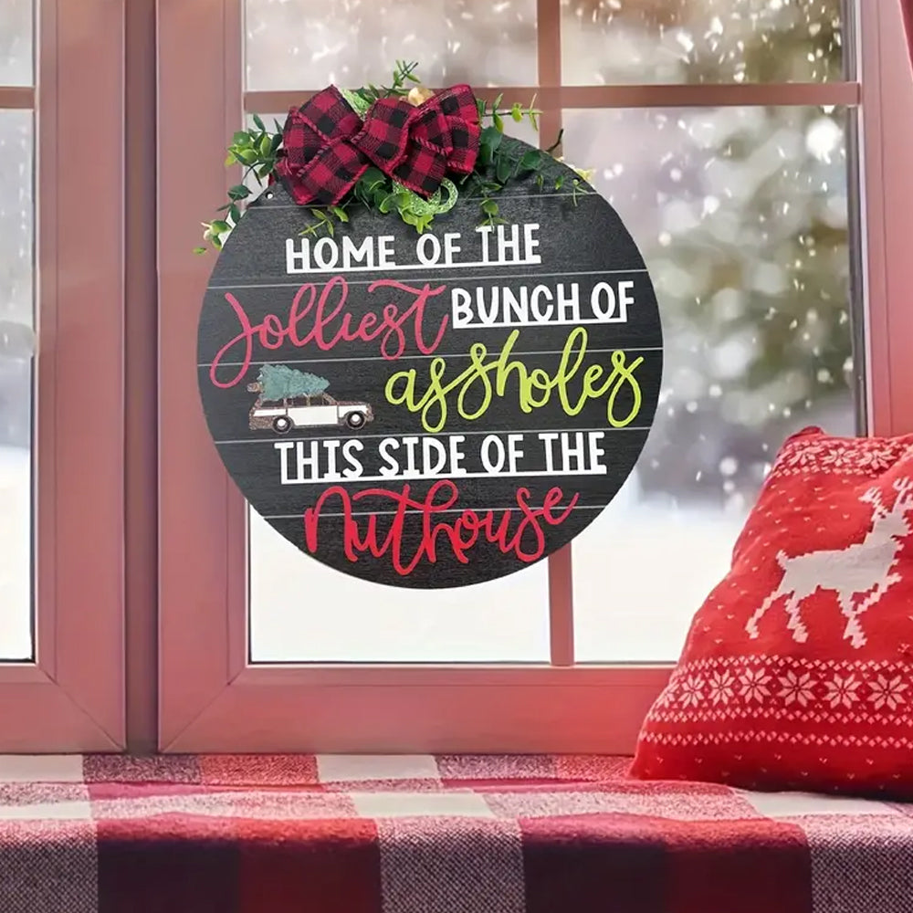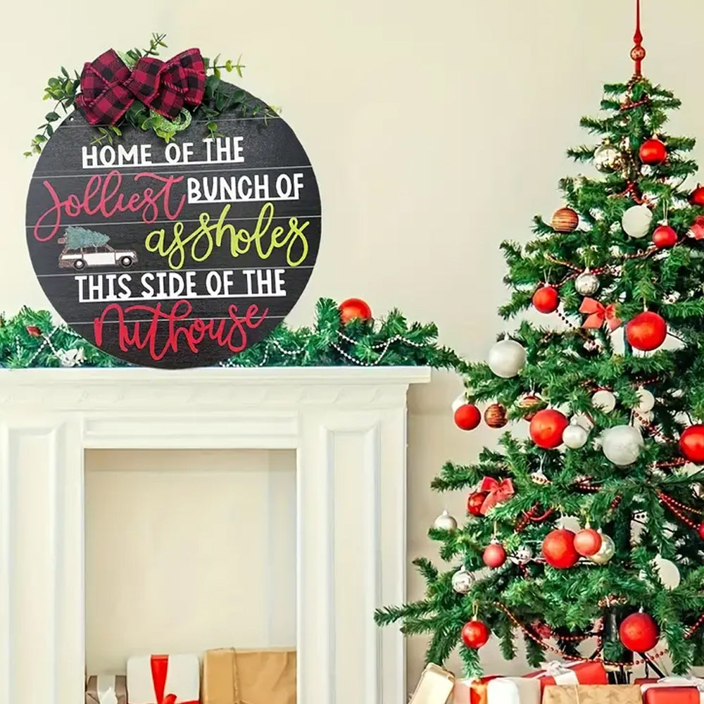 Wooden Christmas Welcome Sign Hanging Wreath Door Sign Xmas Holiday Decor Black