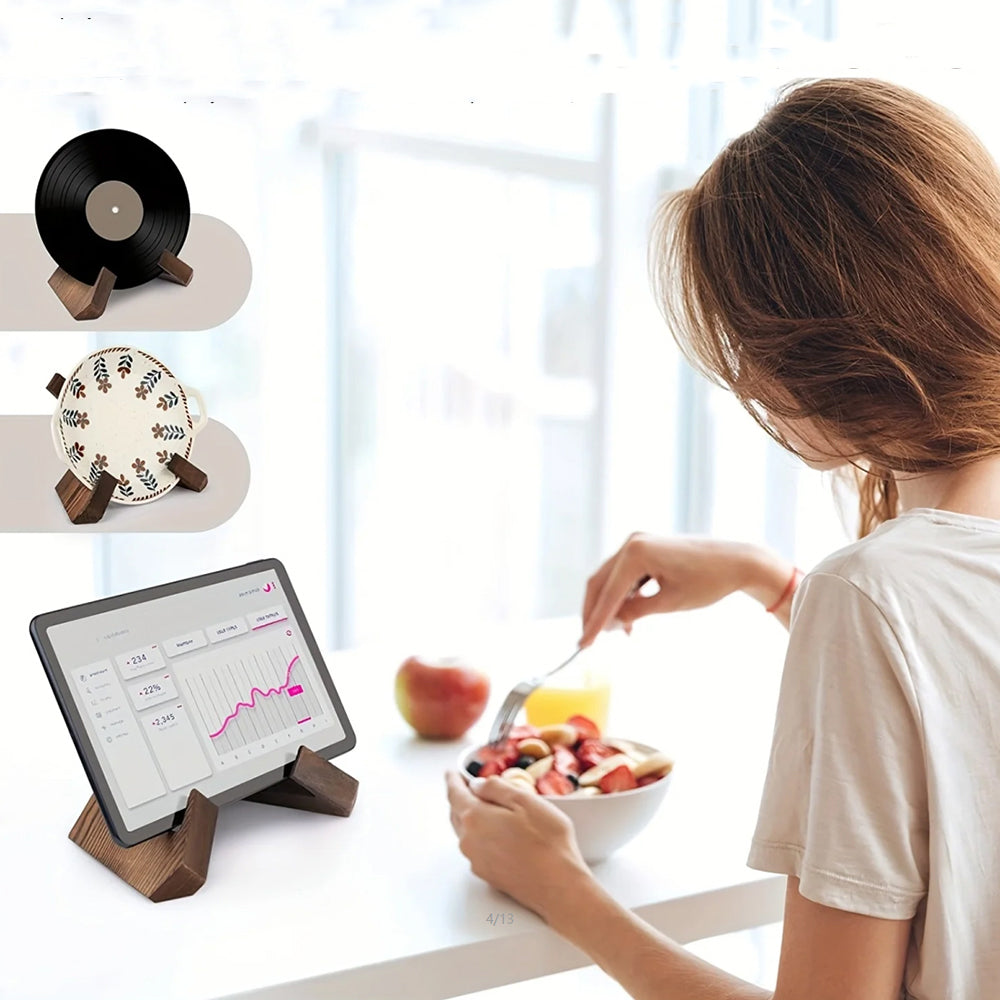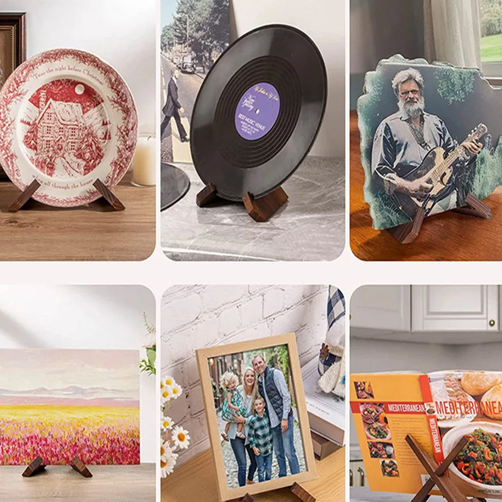 Wooden Cookbook Stand for Kitchen Counter Multifunctional Display Stand for Books Plates Artwork Records