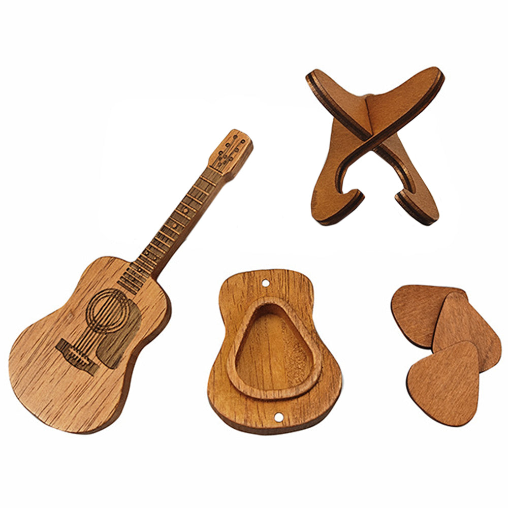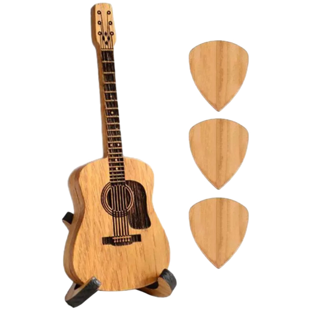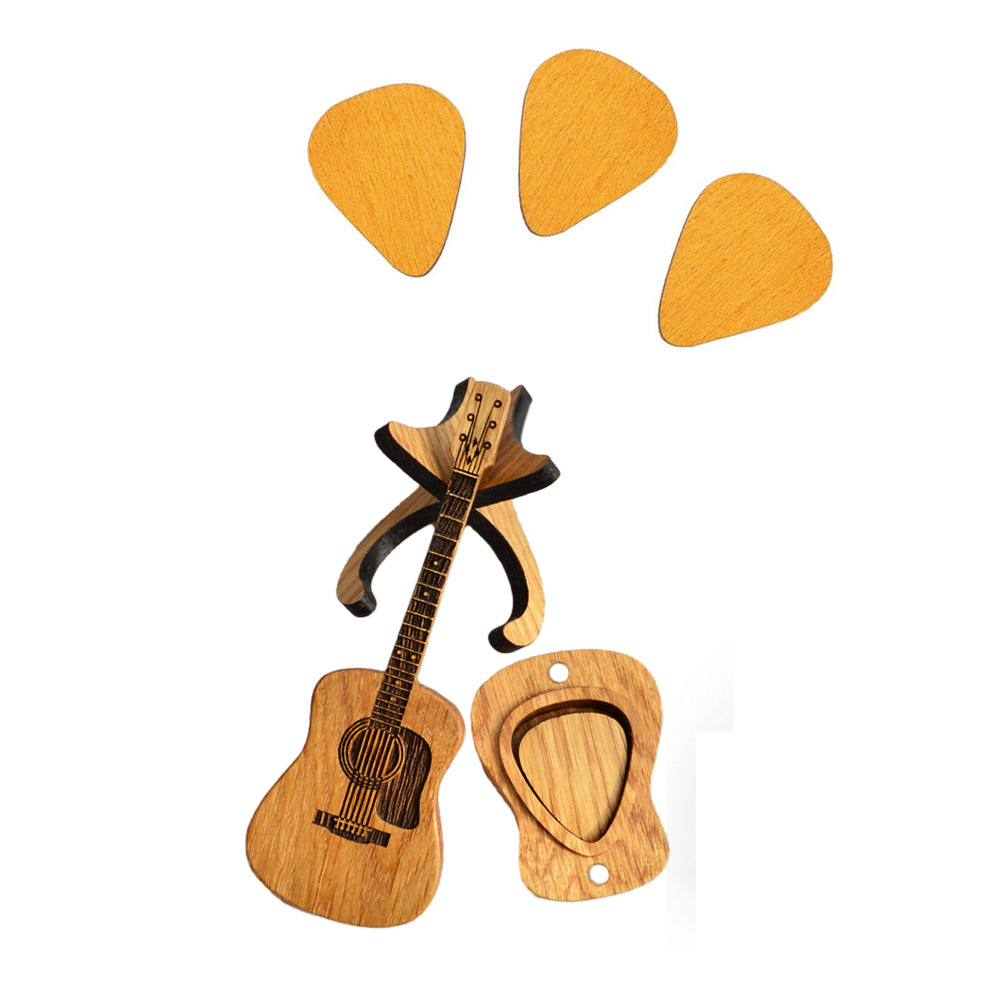 Wooden Guitar Pick with Guitar Shaped Box and Stand Mini Guitar Pick Holder