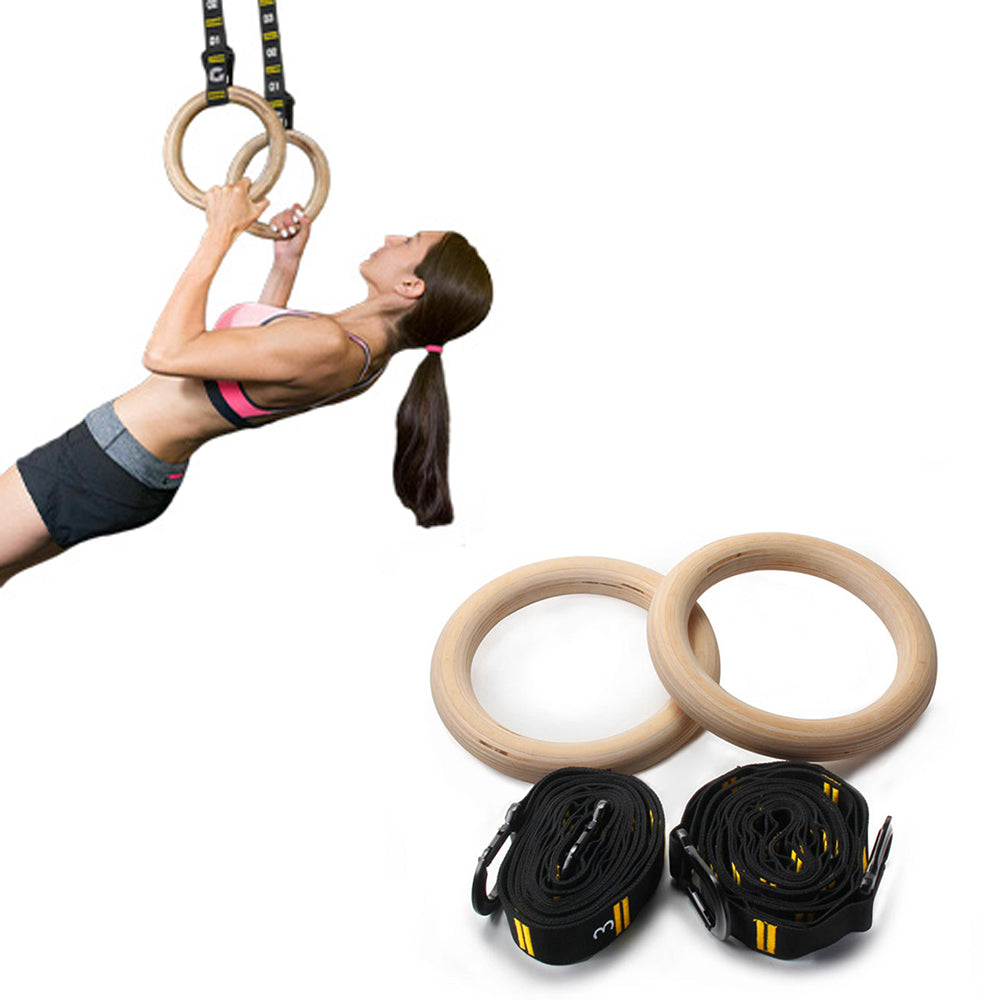 Wooden Gymnastic Rings Set Pull Up Gym Rings with Adjustable Straps for Workout Bodyweight Fitness Training