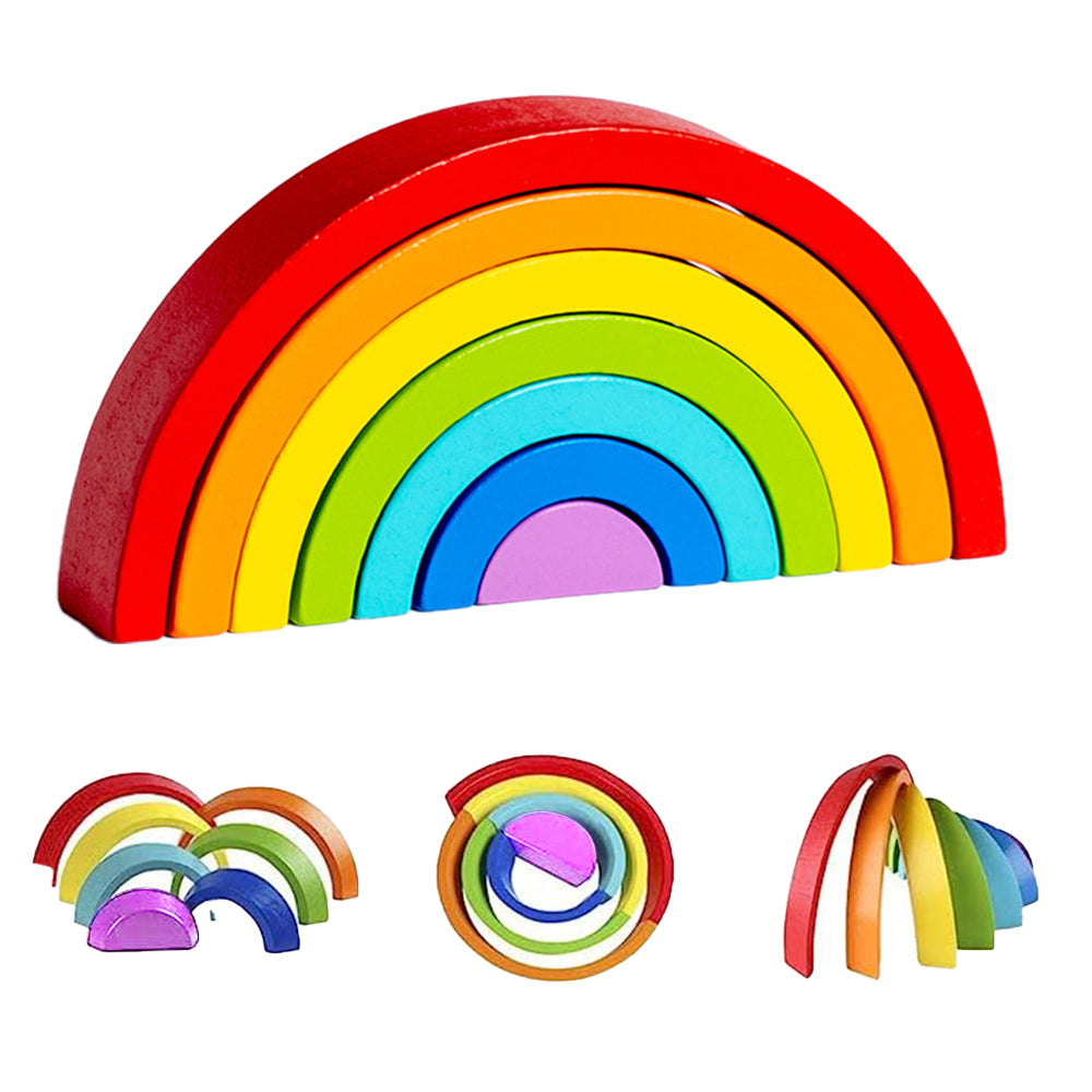 Wooden Rainbow Stacker Nesting Puzzle Blocks Jigsaw Montessori Toys Multicolor