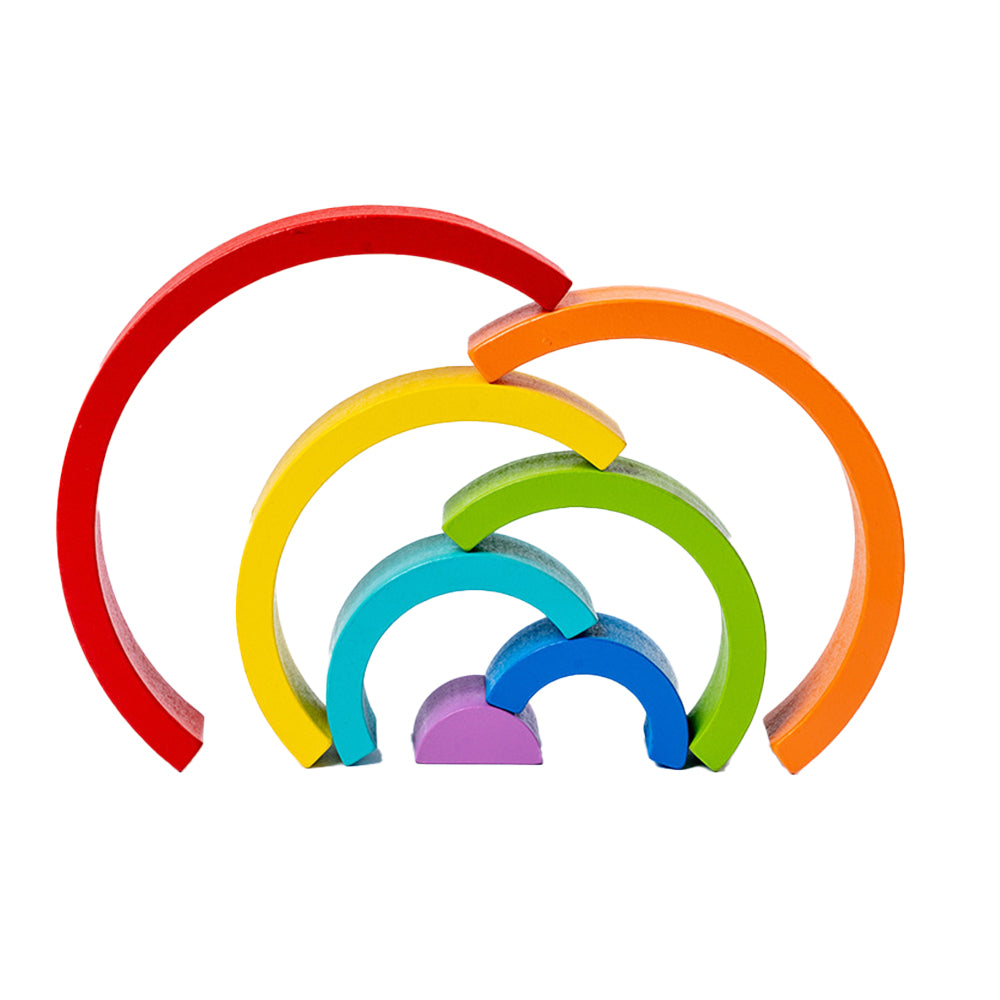 The rainbow stacker nesting puzzle blocks help children to stimulate imagination and develop creativity and intelligence.