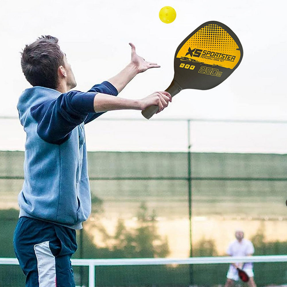 The pickleball paddle set includes 2 paddles and 4 pickle balls, can be used indoors and outdoors for easy interaction with family and friends.