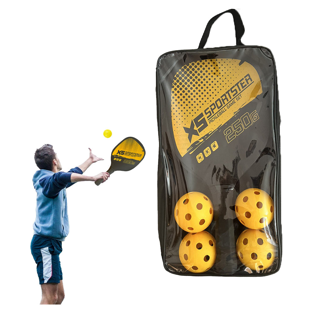 2 Wooden Sports Pickleball Paddle and 4 Pickleball Set with Carry Bag Yellow