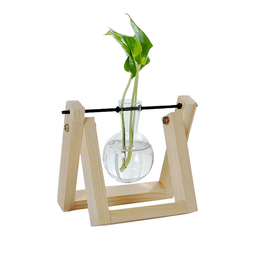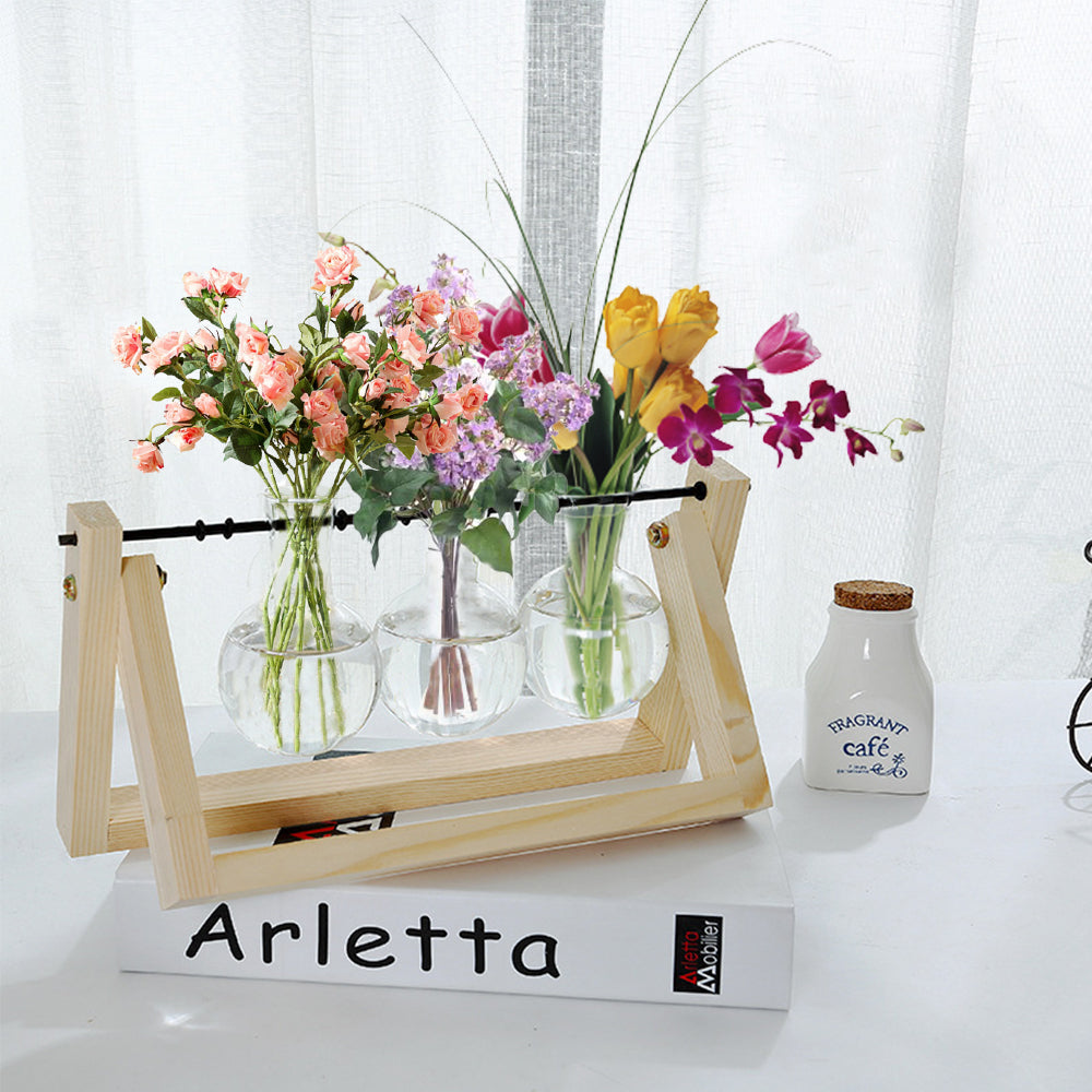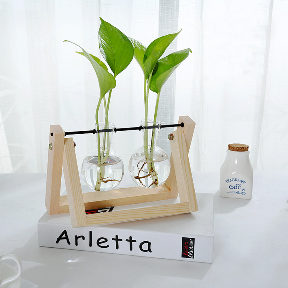 Wooden Stand Hydroponic Plant Glass Vase Container Home Decor