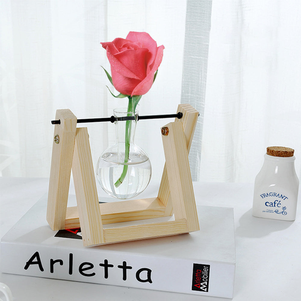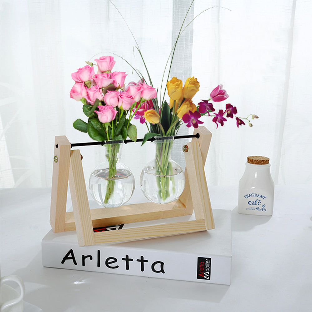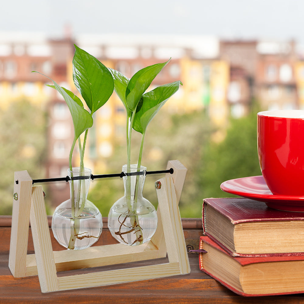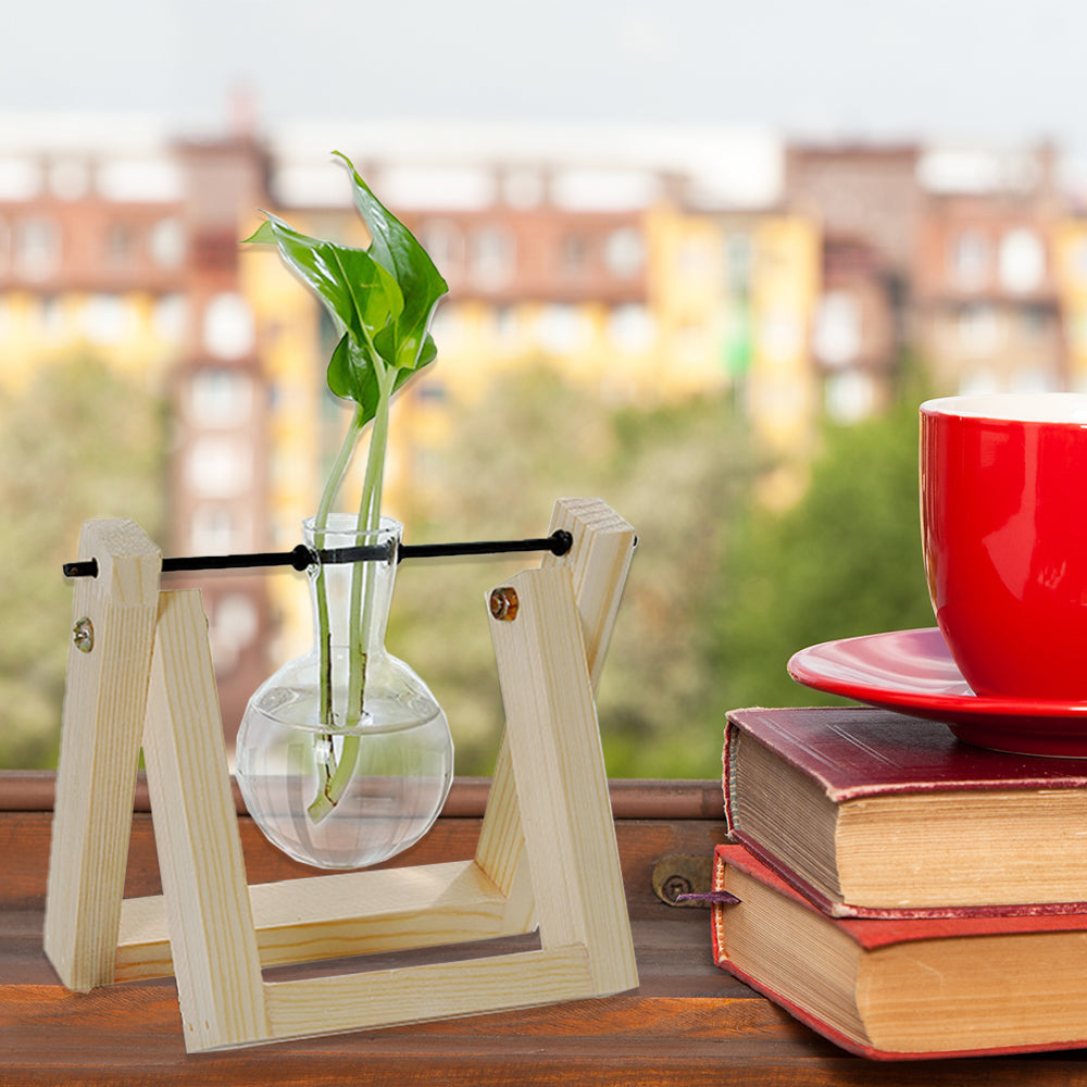Wooden Stand Hydroponic Plant Glass Vase Container Home Decor