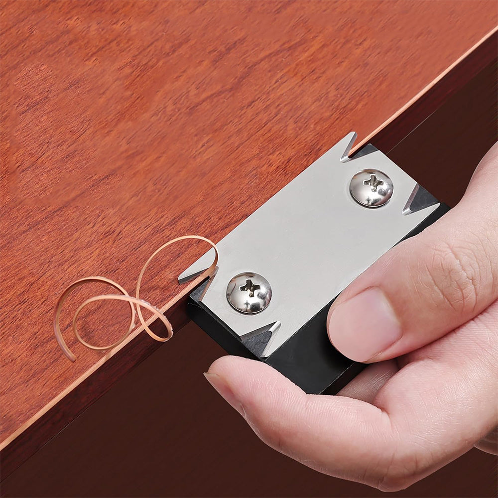 Compact and durable woodworking edge trimmer with high-strength steel scraper and stainless steel blades, ideal for trimming edges and removing burrs on various materials.