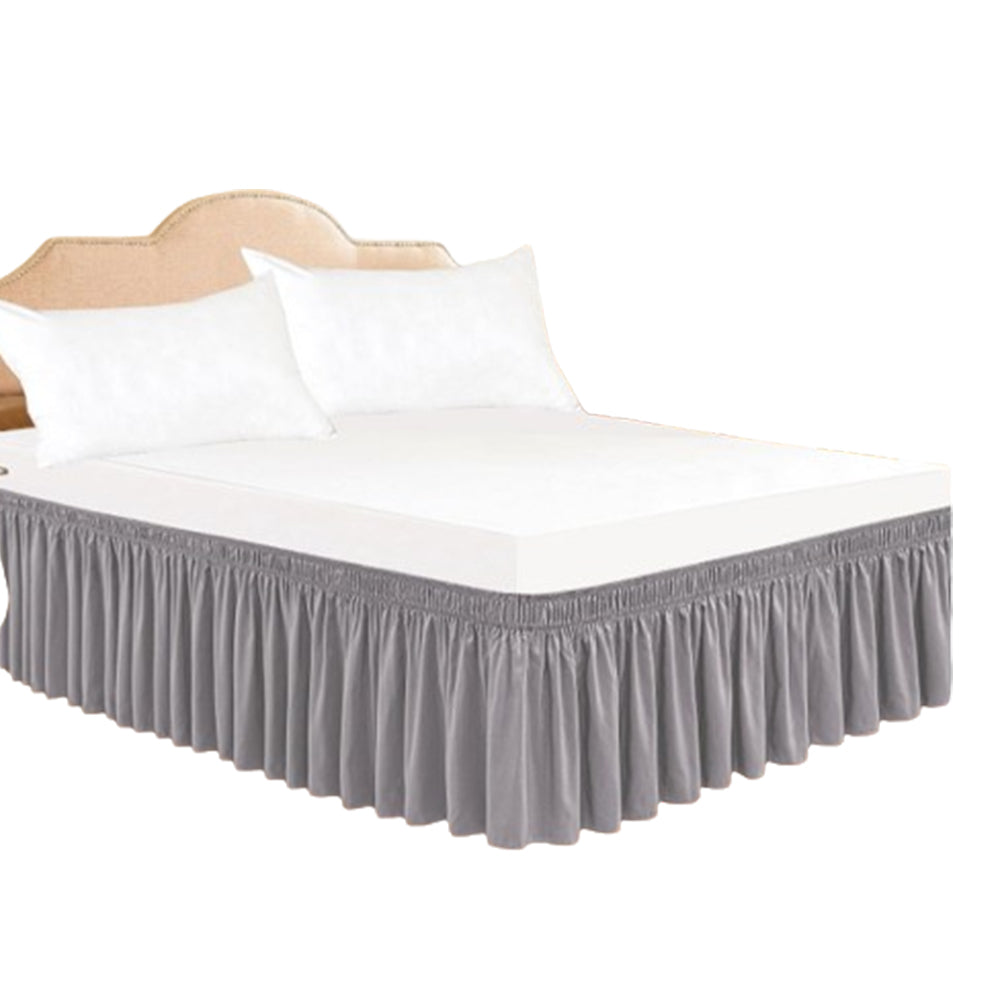 Wrap Around Bed Skirts Dust Ruffles Bed Skirt with Adjustable Elastic Belt Grey