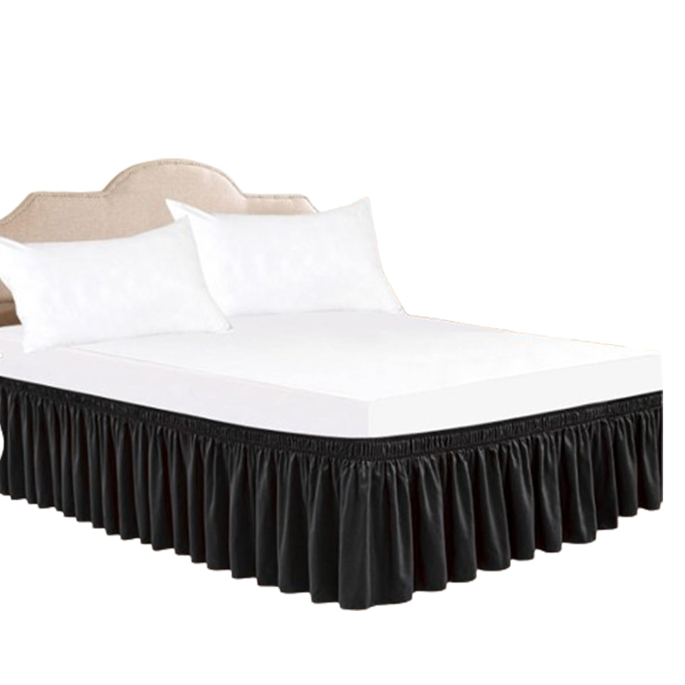 Wrap Around Bed Skirts Dust Ruffles Bed Skirt with Adjustable Elastic Belt Black