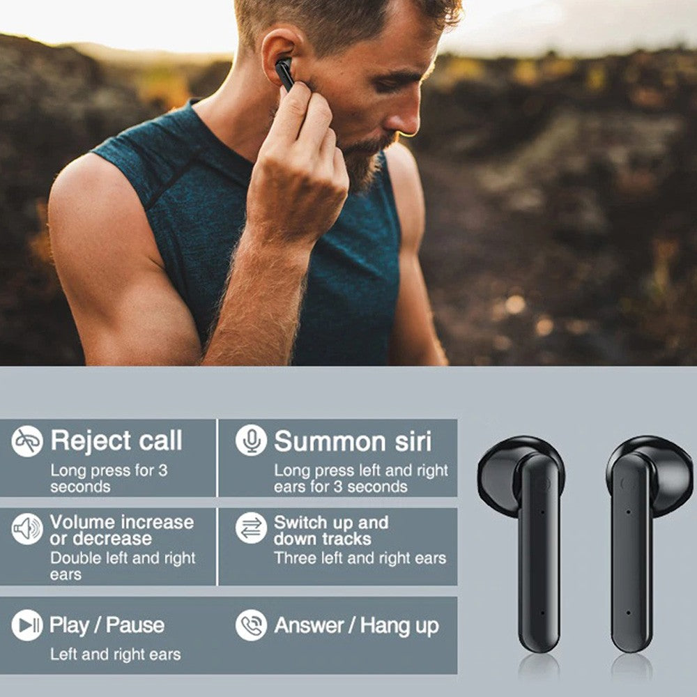 Just remove the wireless earbuds from the charging case, and the bluetooth headphones will automatically turn on and pair with the phone