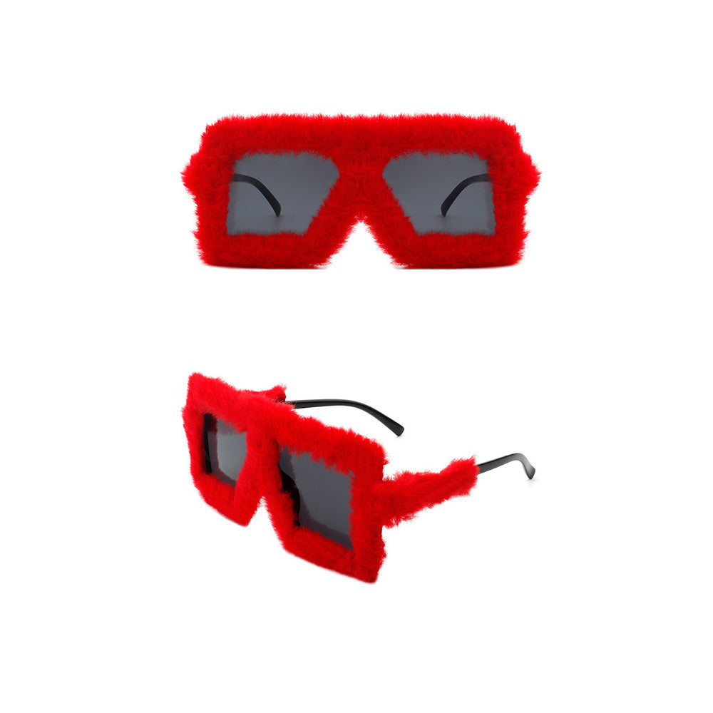 Y2K Fuzzy Decorative Glasses Retro Funny Oversized Square Glasses Trending Decor Red