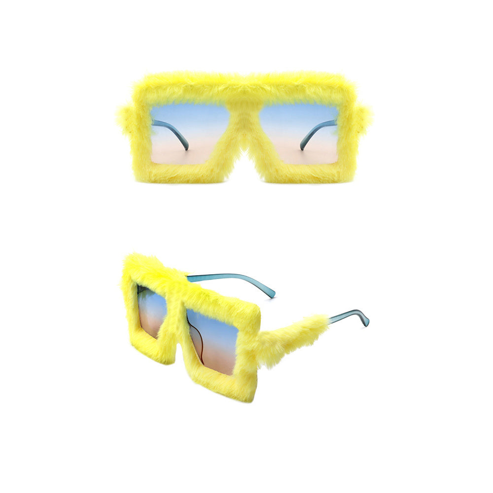 Y2K Fuzzy Decorative Glasses Retro Funny Oversized Square Glasses Trending Decor Yellow