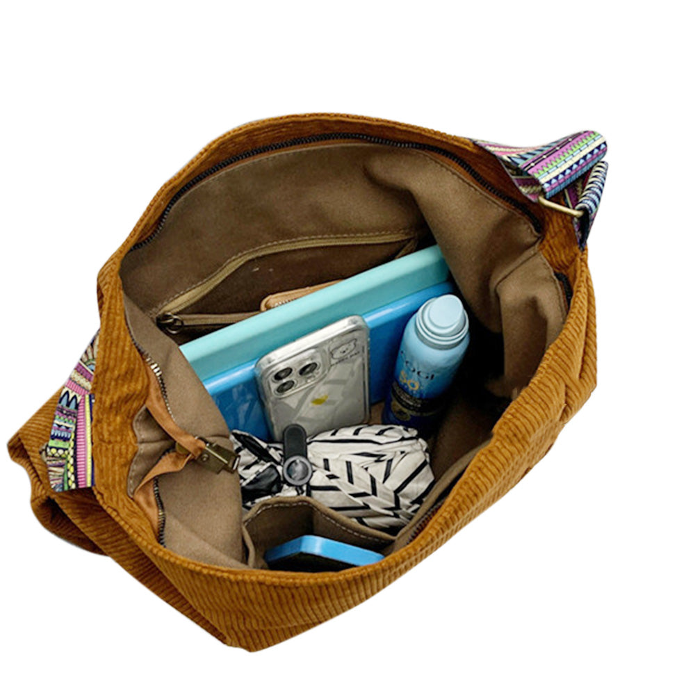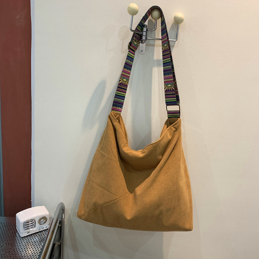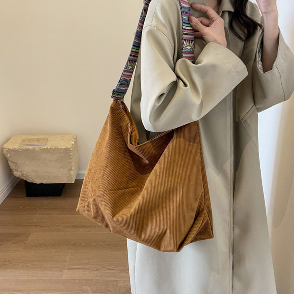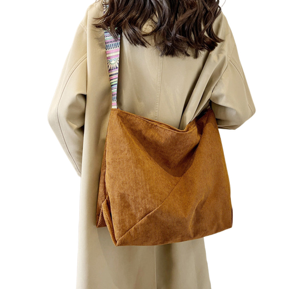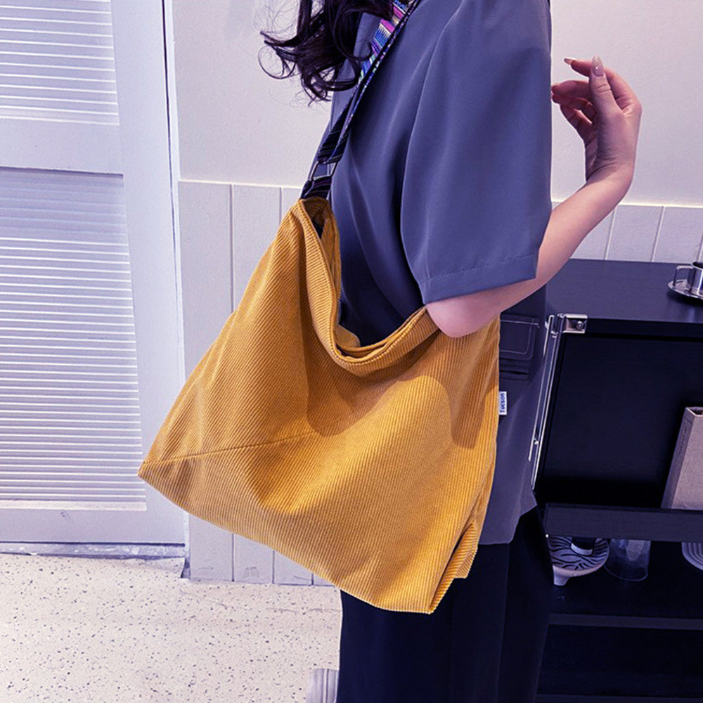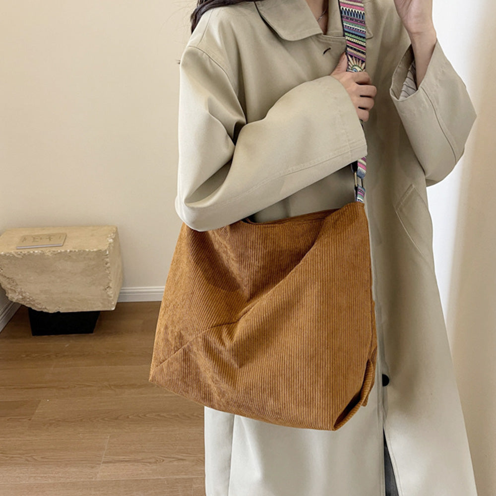 This fashionable corduroy tote bag combines classic style with modern functionality. Designed for women who need both capacity and elegance, it offers plenty of room to carry your daily essentials, whether you're heading to work, school, or out shopping.